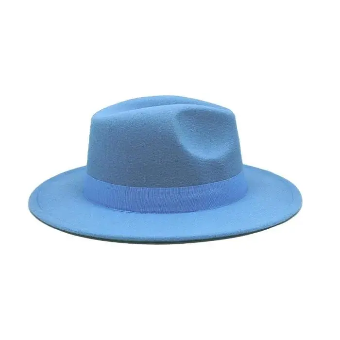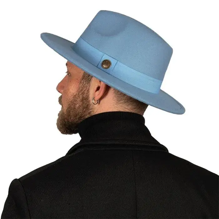 Baby Blue Stiff Brim Fedora Hat
