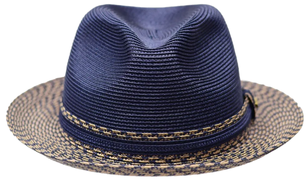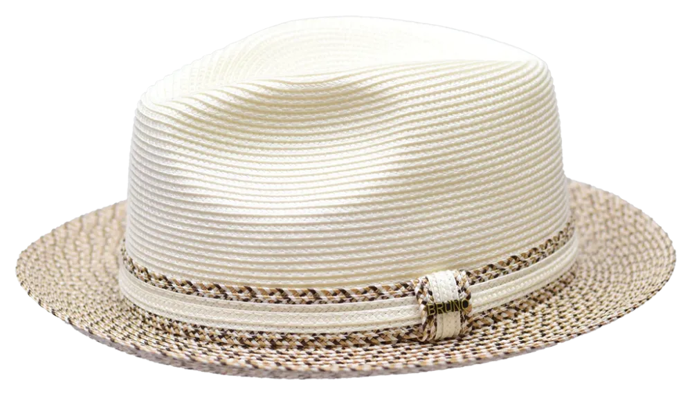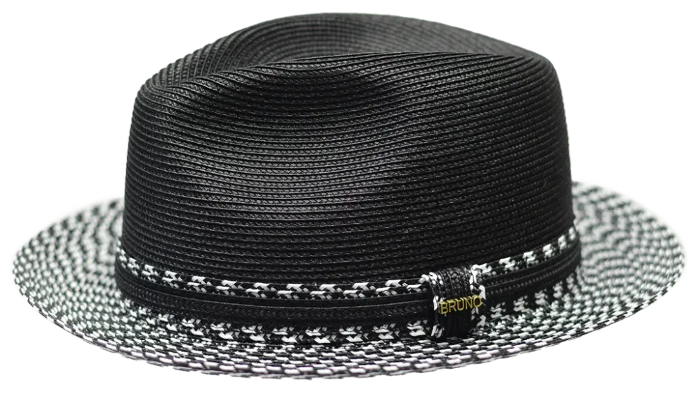The Antonio Braid Straw Fedora by Bruno Capelo Hats is a dapper fedora style hat that instantly draws attention with its unique tweed pattern and contrasting hat band. Featuring a center dent/pinch front crown, this collection is surrounded by a 1.25" inch matching hat band that is finished with a simple Bruno pin. Created from high-quality natural poly braid straw.