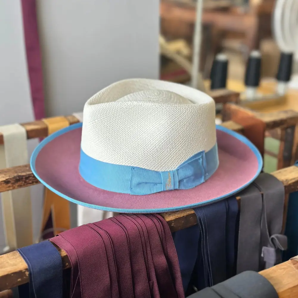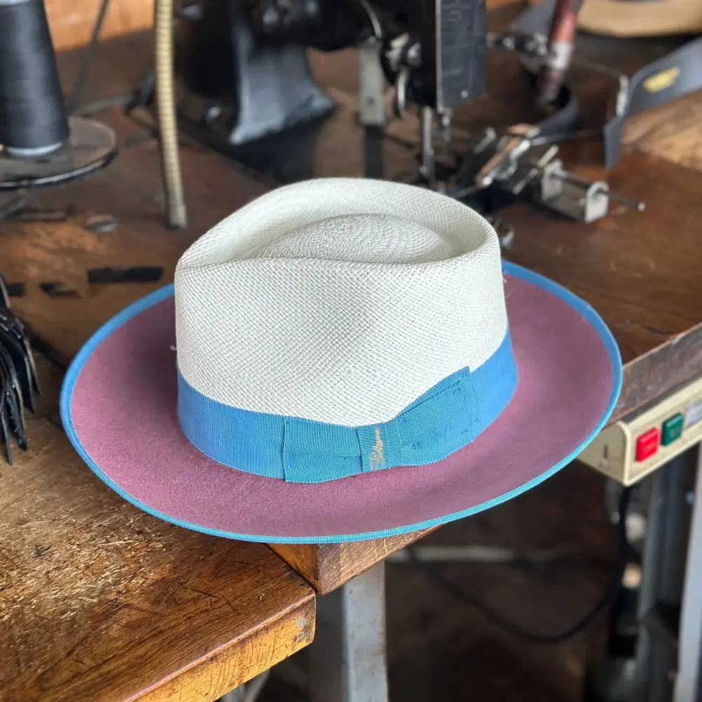 Colors: Bleached White Panama Crown, Powder Blue Brim