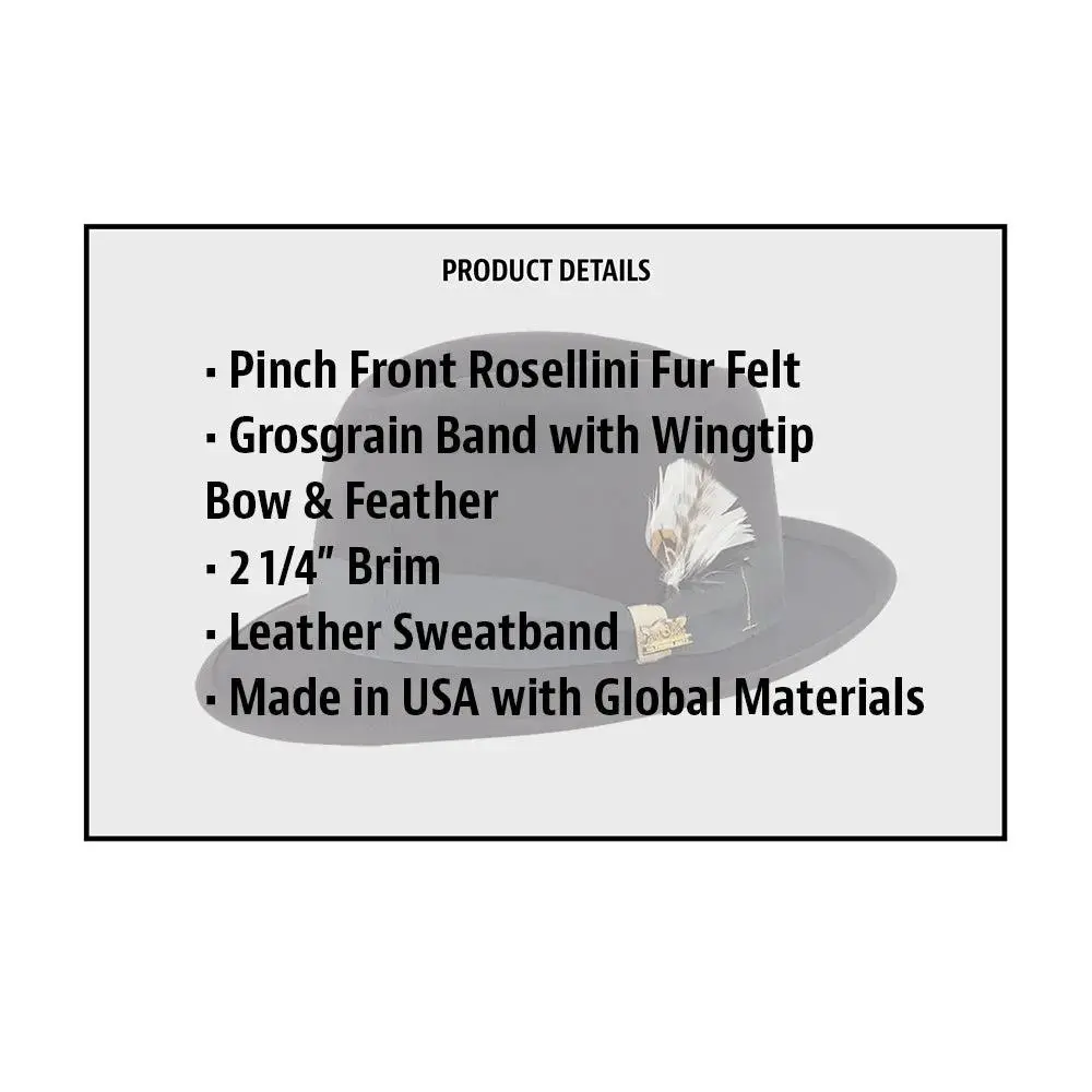 Just like Detroit, the Biltmore Detroit fedora was made in the good old USA. Its extra smooth fur felt features a soft, supple feel, and the Rosellini finish is sure to leave your outfit finished. Make sure to grab the Detroit when you want to dress it up.