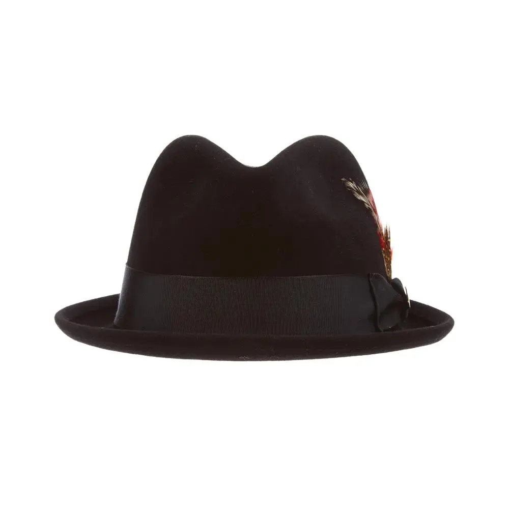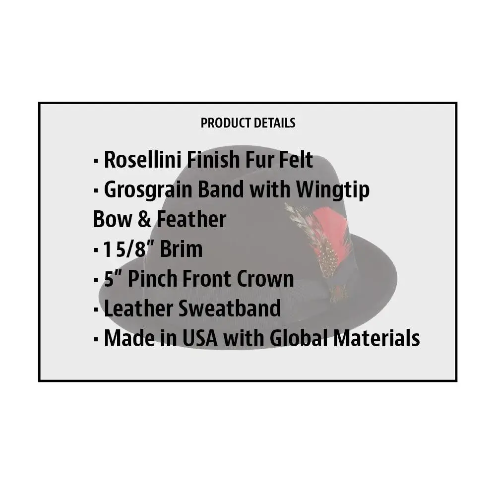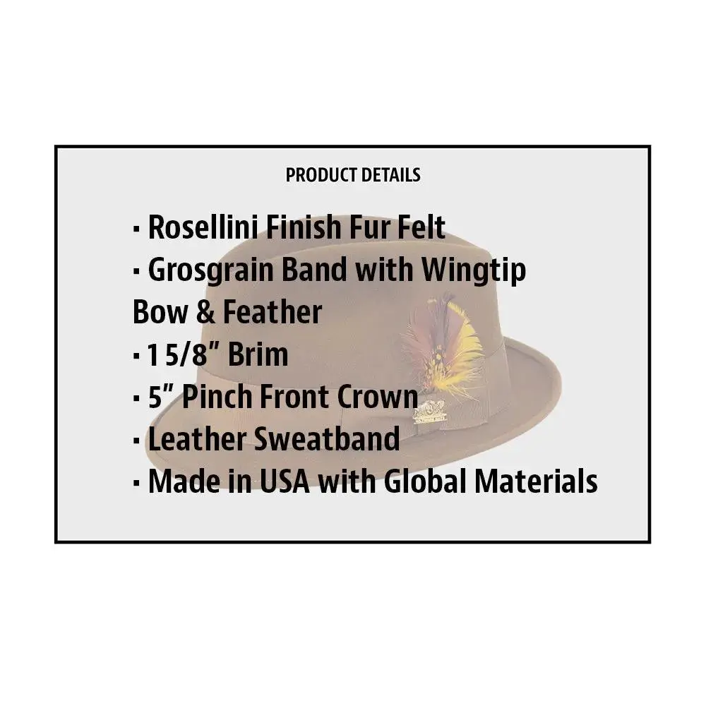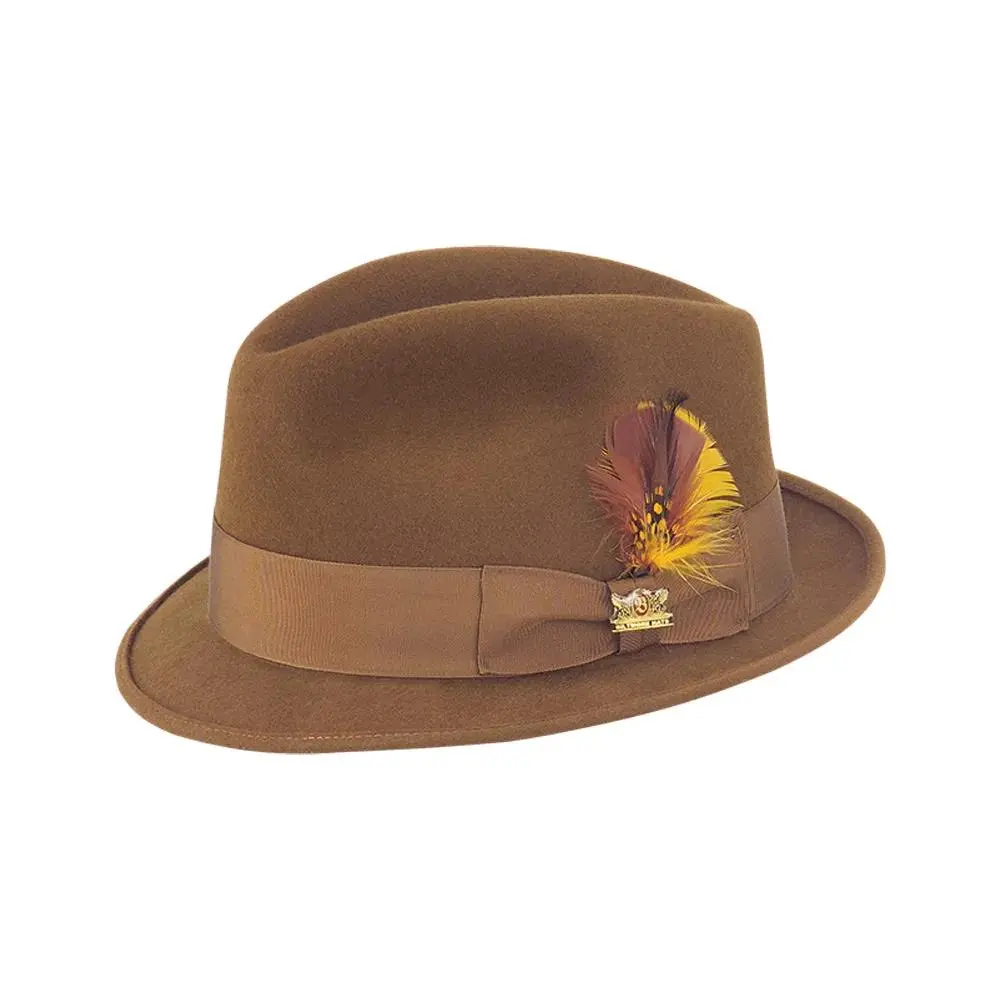 Nothing says a unique approach to life like a fur felt trilby hat. Elegant and rare, this beautiful piece with leather band is finished perfectly and ready for your next dress event.