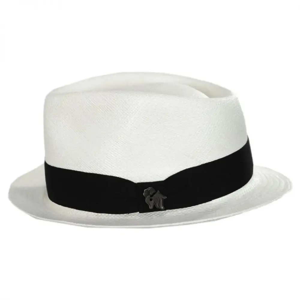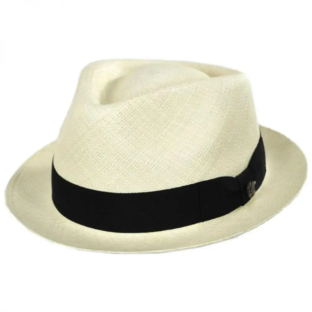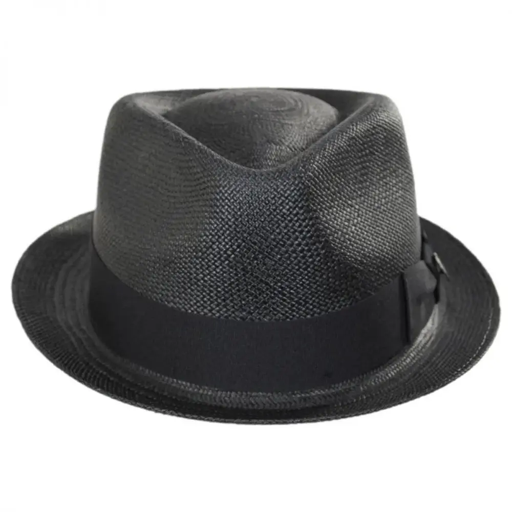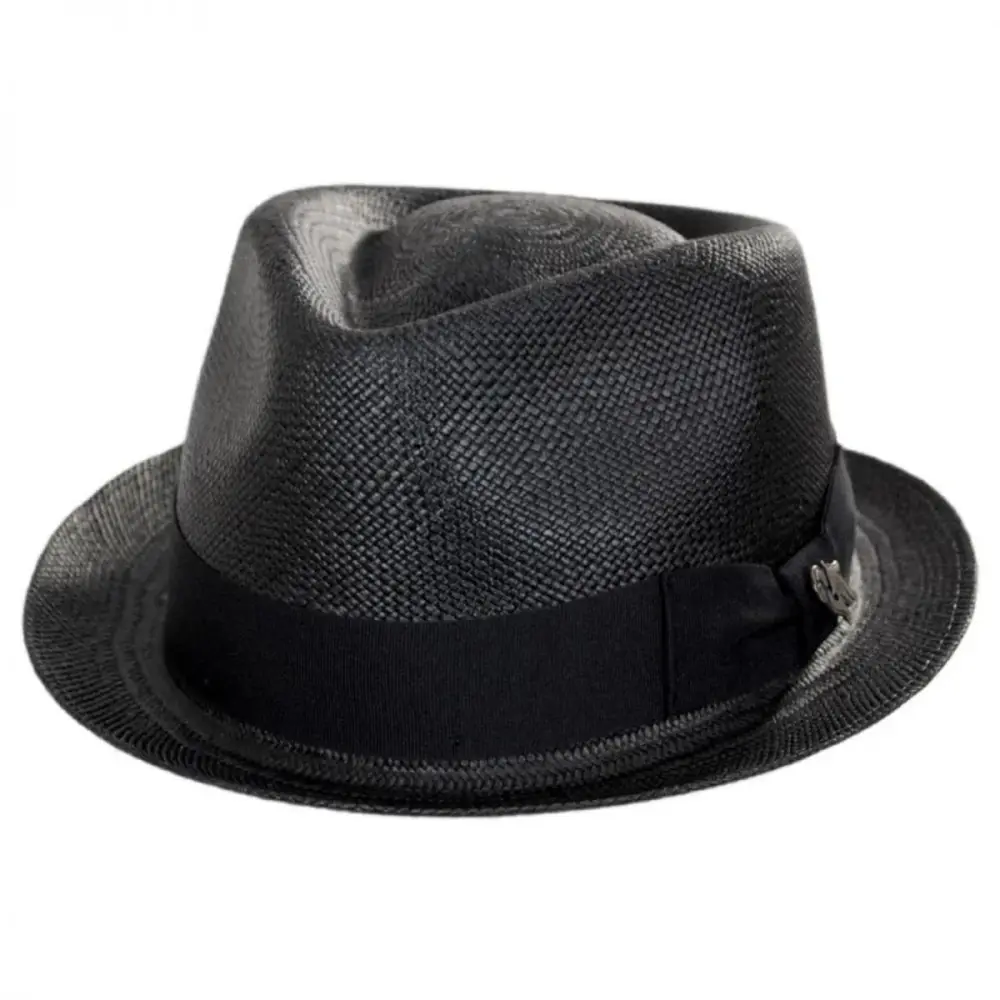 Bigalli's sleek Boston Panama Straw Trilby Fedora Hat features a modern and smaller-profile fedora design ideal for both men and women. Enjoy the unparalleled look of a handwoven and handcrafted panama hat in a hip and trendy fedora style! The Boston is blocked with a classic teardrop crown and stingy (narrow) brim. Trims are kept classic and minimal and include a black grosgrain ribbon hat band with side bow and Bigalli logo side pin.