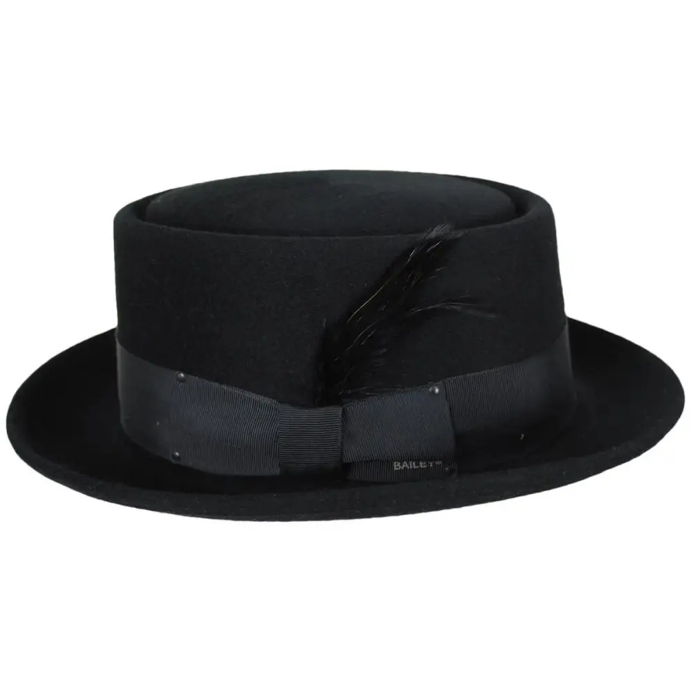 The Bailey 1922 Jett Heritage Wool Felt Pork Pie Hat combines a classic men's style, with Bailey's fashion forward polished wool felt. These premium wool felts are crafted with Bailey's exclusive blend of 100% virgin wool fibers and a unique silk-like finish, adding a luxurious sense and distinct character.