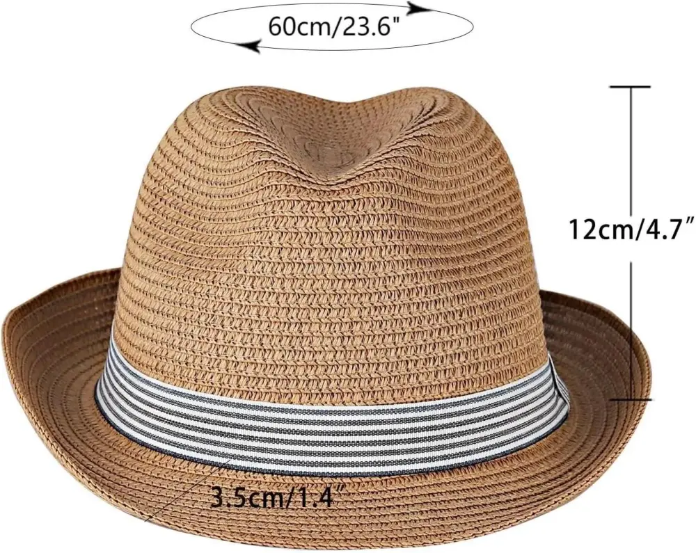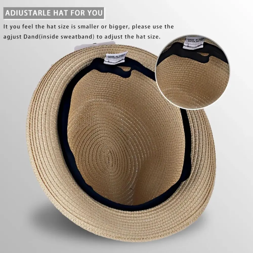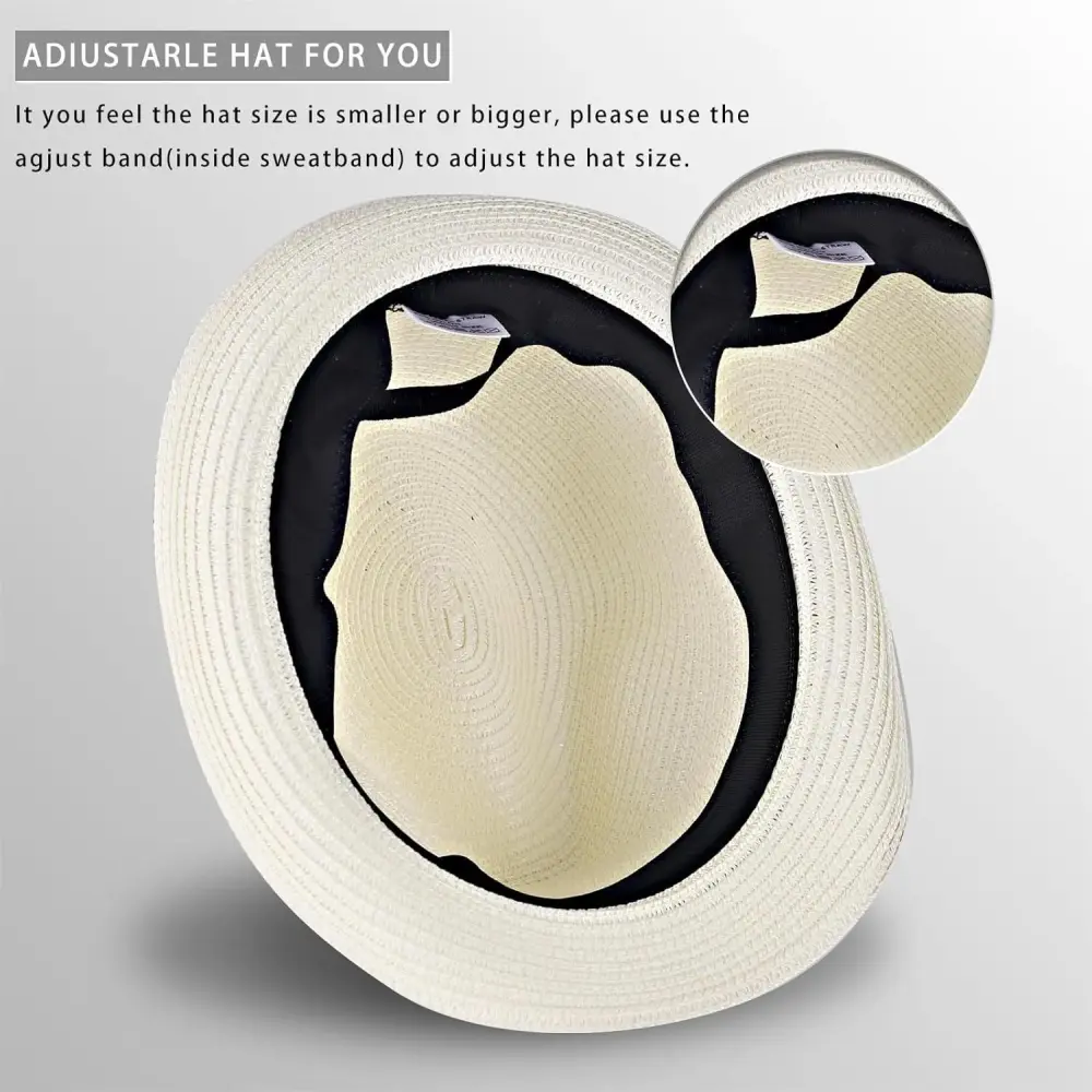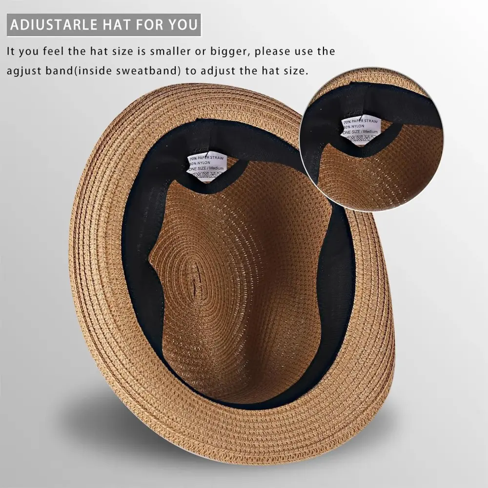 - 【Unisex Straw Fedora Hat with Nylon Reinforcement】Crafted from a unique 70% paper straw + 30% nylon blend, this lightweight dress hat combines natural straw texture with modern durability. Ideal for weddings, beach outings, or urban styling – effortlessly transitions from casual to formal looks.