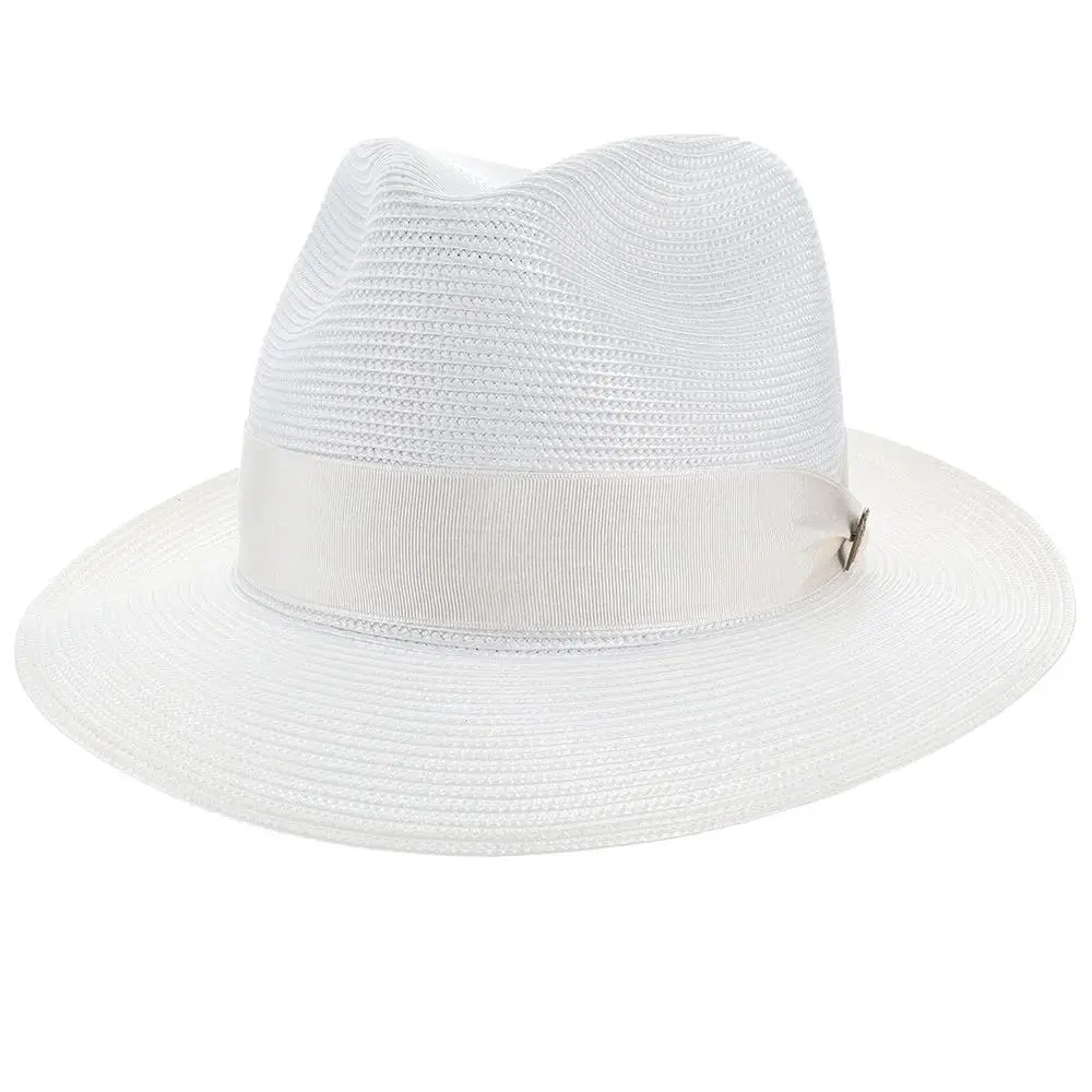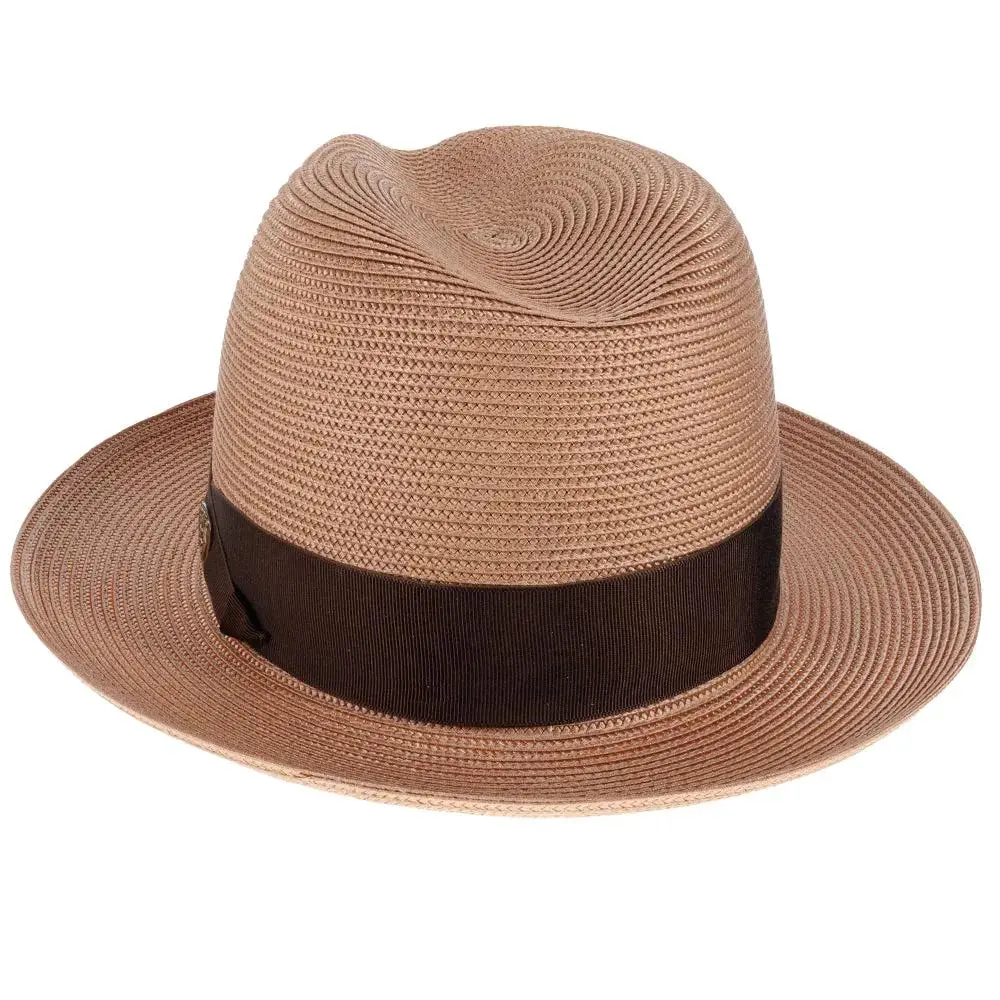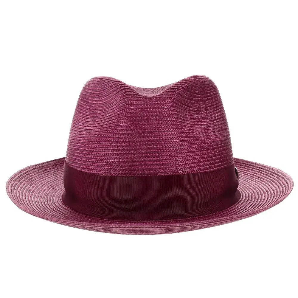 If you need a summer fedora, look no further than this Dobbs Rosebud straw fedora. Looking dressy when it's hot outside can be tricky, but Dobbs comes to the rescue with this spectacular hat. These fedoras are stunning with their bold color statement, and a complementing grosgrain hatband will have you looking fashionable, while remaining cool.