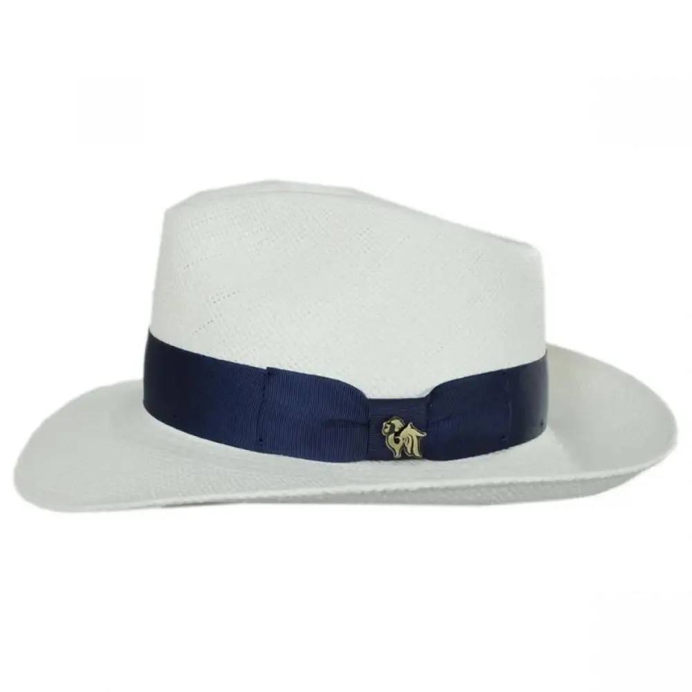 Look sharp with the Santorini Panama Straw Fedora Hat from Bigalli. This stunning fedora is made in Ecuador, and features a grosgrain ribbon hat band wrapping around the crown, complete with a nice bow and Bigalli metal side pin. Additionally, the padded cotton sweatband is comfortable, ensuring a perfect fit!