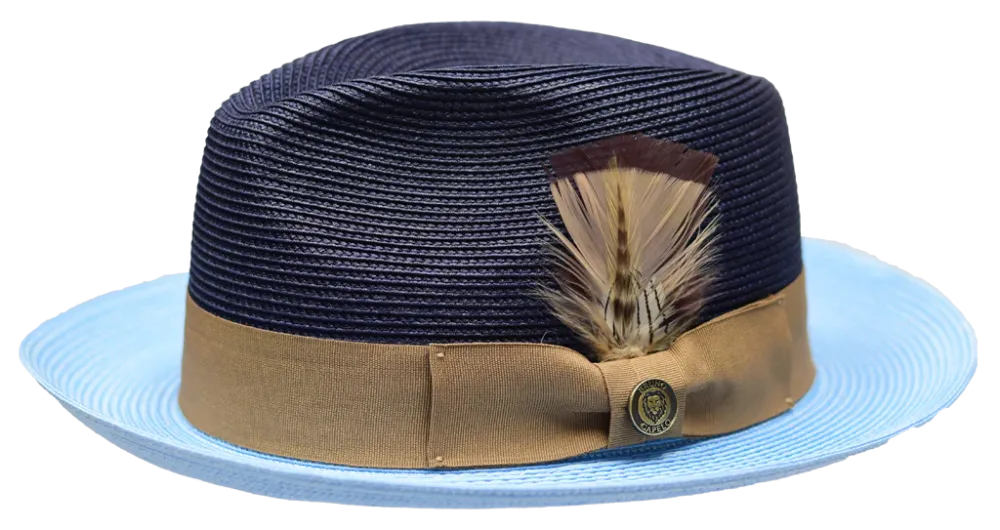 A wide 1.25" grosgrain ribbon hat band is accented with a removable B-logo pin and a stylish guinea feather, adding a sophisticated edge. Inside, a soft elasticized cotton sweatband includes an adjustable sizing string for a custom fit. Unlined for cool comfort, the South Beach delivers standout looks without the high price tag.