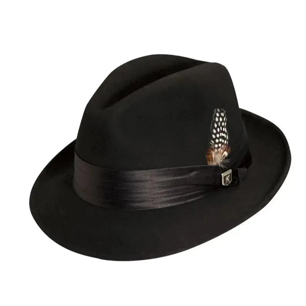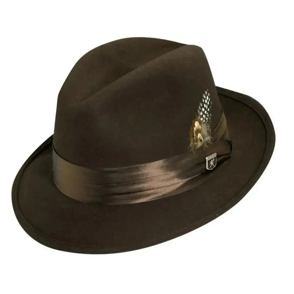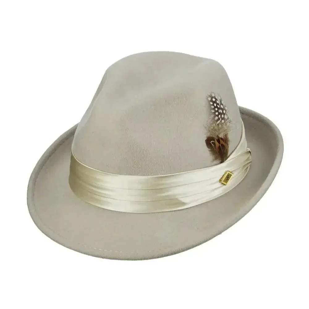 • Silk Hat Band You won't be singing the blues over the Johnston fedora from Stacy Adams. You'll love the jazzy style of this soft wool fedora, which features a cool three pleat silk hat band with removable feather at the profile. The Johnston also comes with a Stacy Adams custom hat pin.