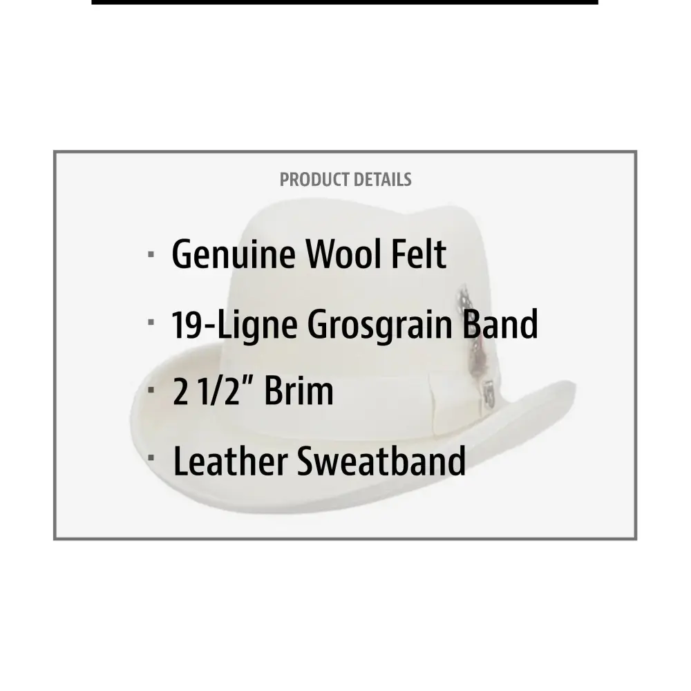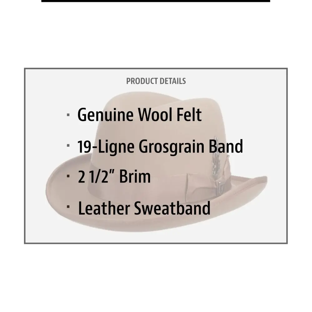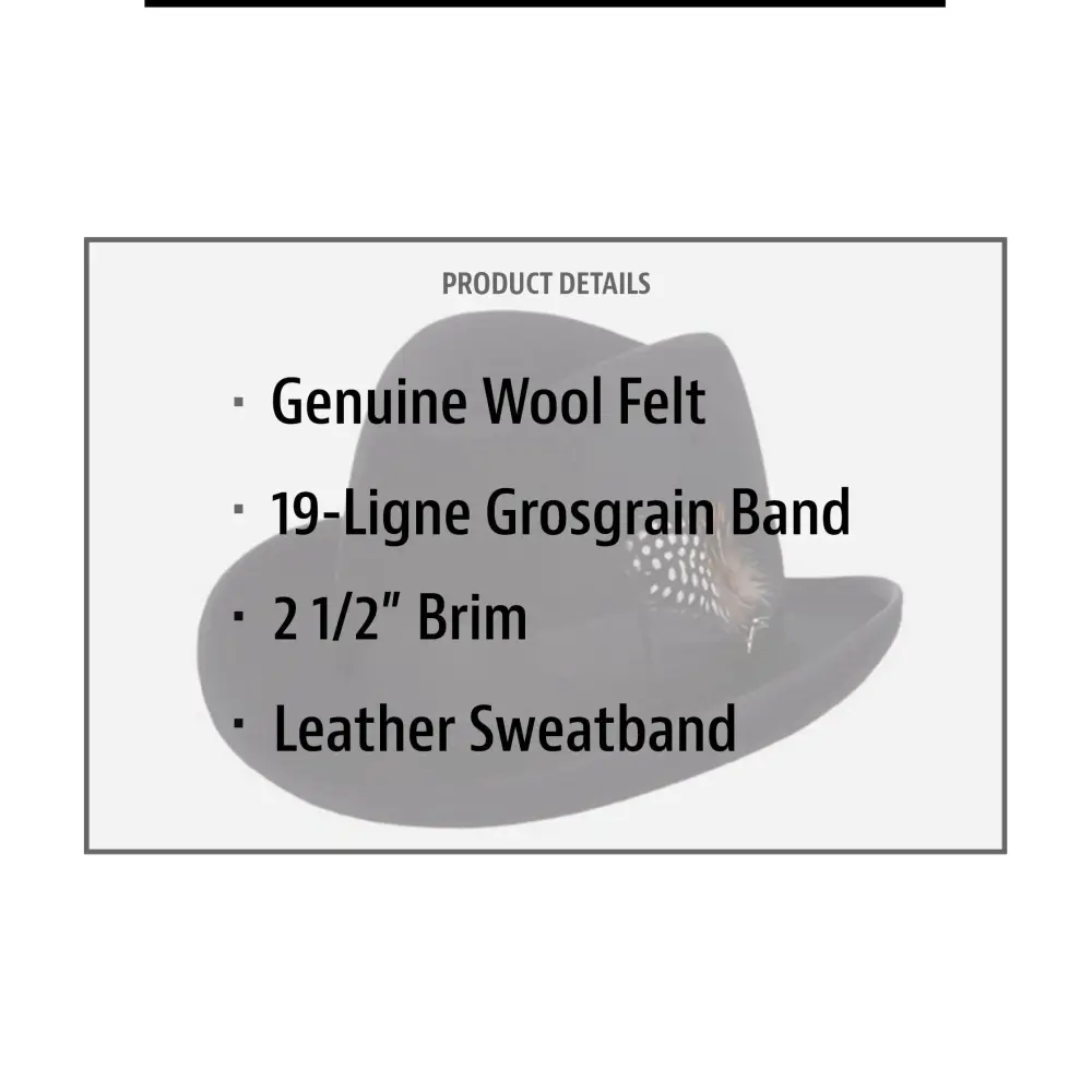 Homburg hats are for when you’d like to dress up the rest of what you’re wearing. This wool felt Stacy Adam’s men’s homburg hat is just the item you’re looking for when the occasion calls for the 9s.
