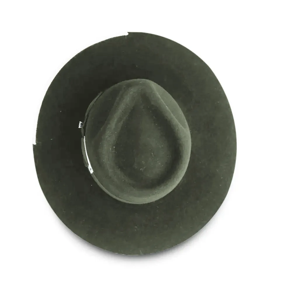 The Black Stud is made with 100% American rabbit felt, giving a soft texture and gorgeous sheen. The distinctive style is accented by a large, 4 3/4" teardrop crown and 3 1/2" flat brim. Regardless of the color options you choose, the Black Stud can be identified by the signature sparkling stud featured in the middle of the ribbon.