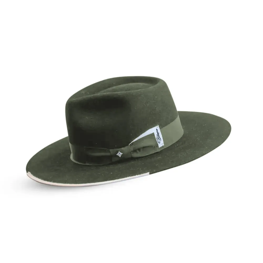 The limited edition Dark Green and White Stud by Bellissimo Hats is a one-of-a-kind wide-brimmed fedora accented with a sparkling stud on the bow. Not only is the Dark Green Stud a rare find for hat collectors, but it is also one of the best all-around fedoras for fashionable consumers. If you’re looking for a dramatic look, we offer the Black and white (black body, white ribbon, and white trim). Alternatively, if you want to add a pop of color to your hat, we also have the Black on Burgundy version (black body, burgundy ribbon, and trim). Either way, the Black Stud comes in a wide range of sizes.