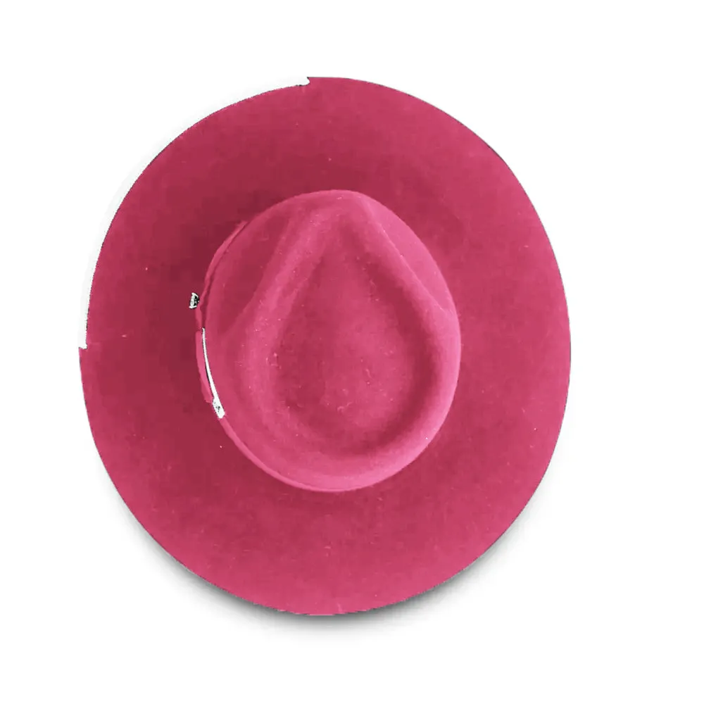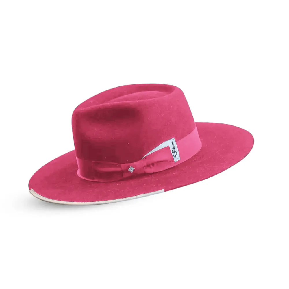 The limited edition Pink and White Stud by Bellissimo Hats is a one-of-a-kind wide-brimmed fedora accented with a sparkling stud on the bow. Not only is the Pink Stud a rare find for hat collectors, but it is also one of the best all-around fedoras for fashionable consumers. If you’re looking for a dramatic look, we offer the Black and white (black body, white ribbon, and white trim). Alternatively, if you want to add a pop of color to your hat, we also have the Black on Burgundy version (black body, burgundy ribbon, and trim). Either way, the Black Stud comes in a wide range of sizes.