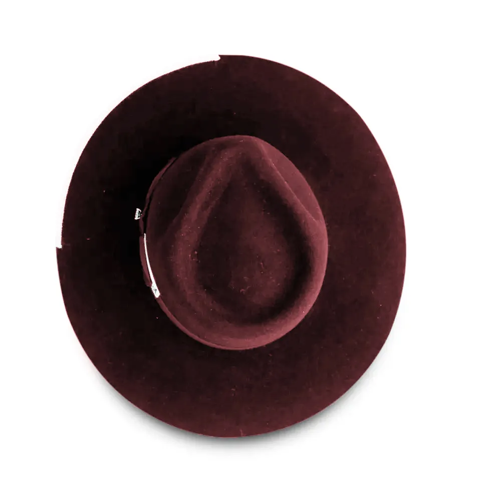 The Black Stud is made with 100% American rabbit felt, giving a soft texture and gorgeous sheen. The distinctive style is accented by a large, 4 3/4" teardrop crown and 3 1/2" flat brim. Regardless of the color options you choose, the Black Stud can be identified by the signature sparkling stud featured in the middle of the ribbon.